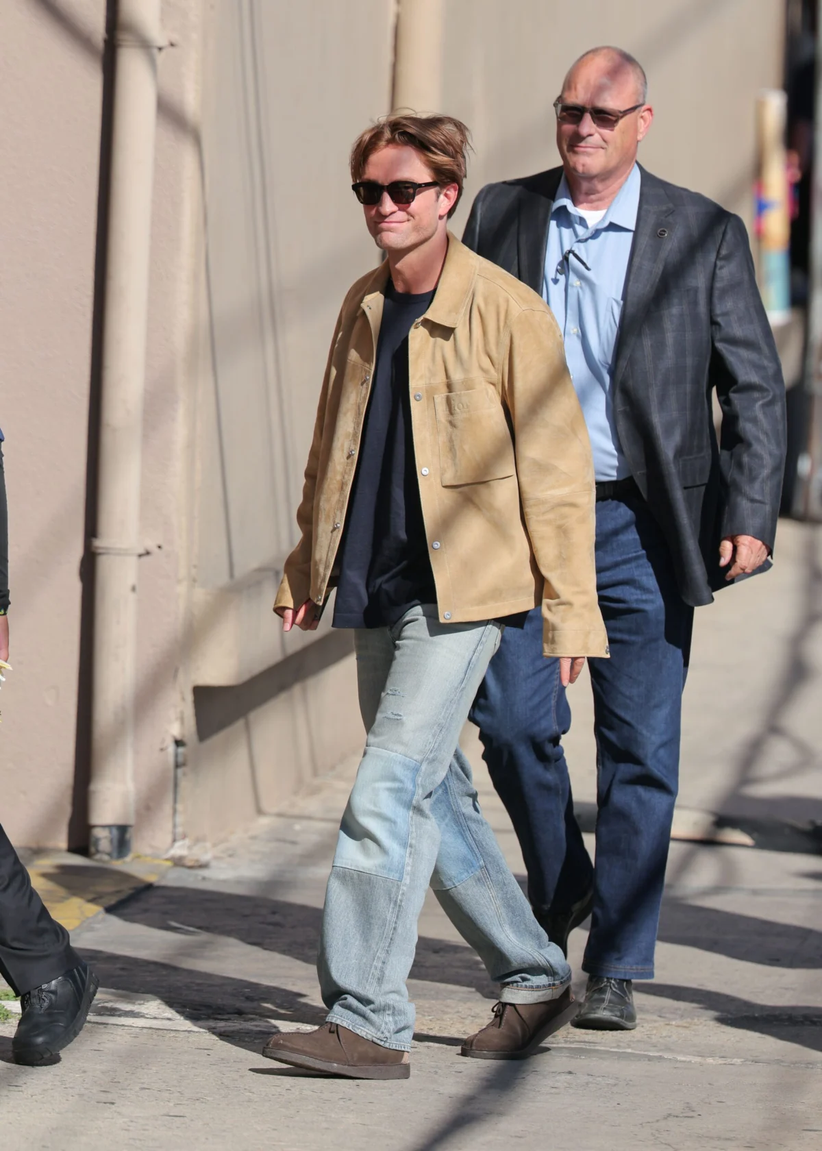 Pattinson’s visit to the Kimmel lot was part of a broader media blitz for his highly anticipated project The Drama, a forthcoming dramedy from A24 directed by Kristoffer Borgli, which sees him starring alongside Zendaya. Despite the high-stakes nature of promoting a prestige film, Pattinson arrived in peak form, sporting his signature tousled hair and a pair of blocky Dior shades that whispered "luxury" rather than shouting it. The ensemble was a carefully calibrated mix of high and low: a relaxed, chocolate-brown suede jacket served as the centerpiece, paired with distressed, light-wash jeans that suggested years of authentic wear. It was a silhouette that skewed more toward a low-key art director in Silver Lake than a global brand ambassador for one of the world’s most prestigious fashion houses.